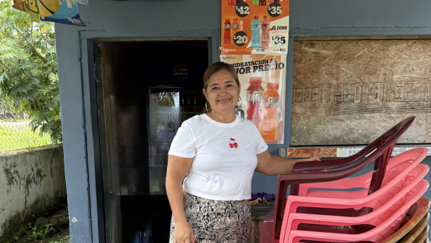 On a bustling main street in Coxen Hole on the island of Roatán, where scooters and shopkeepers calling to customers fight for attention on the sea breeze, you’ll often spot a small folding table in front of a busy pharmacy. Behind it is 47-year-old Karla Azucena Ordoñez Rodríguez, skillfully arranging bracelets, necklaces, and earrings, some of which are purchased from San Pedro Sula, others crafted by her.